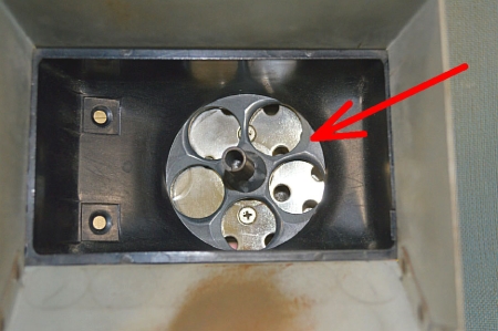 | 2.ホッパー内部のメダル大の穴が数個開いているディスクがモーターにしっかり固定されているか確認して下さい。 | ||